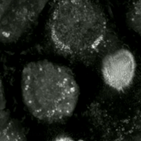 Live-cell imaging has been used to observe the morphological changes that cells undergo during oxytosis/ferroptosis. Initially the cell contracts and then begins to swell. Perinuclear lipid assembly is observed immediately before oxytosis/ferroptosis occurs. After the process is complete, lipid droplets are redistributed throughout the cell (see GIF on right side).[citation needed]