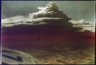 صورة للسحب الركامية الحرارية مأخوذة من طائرة تجارية تحلق على ارتفاع حوالي 10 كم. عام 2002، كشفت أجهزة استشعار مختلفة عن 17 حدثًا سحابيًا ركاميًا ركاميًا مميزًا في أمريكا الشمالية وحدها.[12]