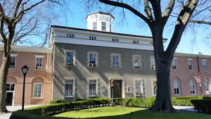 The old Rose Hill Manor House was erected about 1692 and was used as the college infirmary until its demolition...The new Rose Hill Manor House still stands...an ancient stone structure, with tall, tower-like cupola, sandwiched in between two large college buildings. It was constructed in 1838, and today is used as administration building for...Fordham University