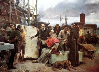 سيسنروس (جالساً) يزور إنشاء مستشفى الصدقة. Sanctuary of the Charity of Illescas (طليطلة) بريشة ألـِهـَندرو فرّانت (1844-1917)