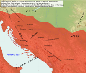 في عمر العشرين خدم كجندي تحت إمرة تيبيريوس، وتمت مكافأته بشارة النصر لخدماته في سحق الثورة في دالماسيا وبانونيا.