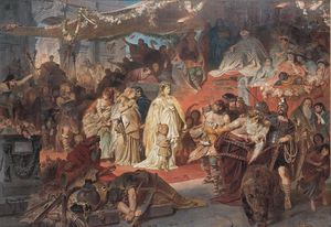 While in the eastern provinces, he came into conflict with the governor of Syria, Gnaeus Calpurnius Piso. During their feud, Germanicus became ill in Antioch, where he died on 10 October AD 19. His death has been attributed to poison by ancient sources, but that was never proven. Beloved by the people, he was widely considered to be the ideal Roman long after his death.[1] The Roman people have been said to consider him as Rome's Alexander the Great due to the nature of his death at a young age, his virtuous character, his dashing physique and his military renown.[2]
