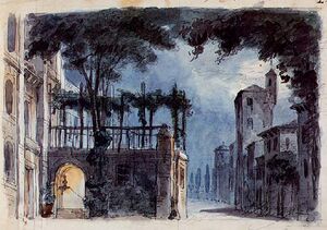 By the time Otello premièred in 1887, more than 15 years after Aida, the operas of Verdi's (predeceased) contemporary Richard Wagner had begun their ascendancy in popular taste, and many sought or identified Wagnerian aspects in Verdi's latest composition.[170] Budden points out that there is little in the music of Otello that relates either to the verismo opera of the younger Italian composers, and little if anything which can be construed as a homage to the New German School.[171] Nonetheless, there is still much originality, building on the strengths which Verdi had already demonstrated; the powerful storm which opens the opera in medias res, the recollection of the love duet of Act I in Otello's dying words (more an aspect of tinta than leitmotif), imaginative touches of harmony in Iago's "Era la notte" (Act II).[172]