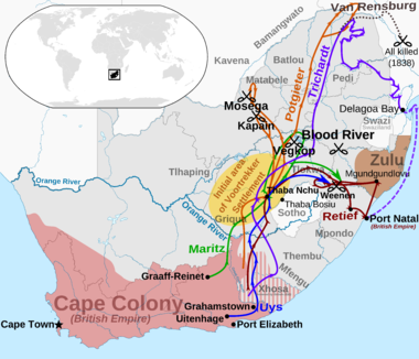 | Piet Retief | February 1837 | Albany | Roughly 100 men, women, and children. | |