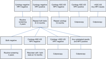 فحص بابانيكولاو، المعروف اختصاراً باختبار لطاخة باب Pap smear يعد استراتيجية فعالة لخفض مخاطر التعرض لسرطان عنق الرحم cervical cancer. في مارس 2003، أقرت إدارة الأغذية والعقاقير الأمريكية FDA فحص دنا ف.و.ح.ب. كأداة فحص رئيسية لاكتشاف حالات العدوى بالأنواع عالية المخاطرة من ف.و.ح.ب. التي قد تؤدي إلى سرطان عنق الرحم. وقد أثبت اختبار لطاخة باب أنه من أنجح اختبارات الفحص screening في تاريخ الطب، إلا أن الكلية الأمريكية لأطباء الولادة وأمراض النساء (أكوج ACOG) تشير إلى طرق علم الخلايا Cytology والمعتمدة على السوائل، مثل ثين بريب Thinprep و شور بريب Sureprep، قد تفشل في اكتشاف 15 - 35% من حالات تكون الورم العنقي داخل الظهاري CIN3 والسرطان.