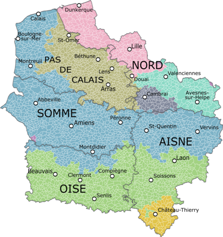 المنطقة تحدها بلجيكا (الفلاندرز و والونيا) إلى الشمال الشرقي، القنال الإنگليزي إلى الشمال الغربي، بالإضافة إلى المناطق الفرنسيو Grand Est إلى الجنوب الشرقي، Île-de-France إلى الجنوب، و نورماندي إلى الجنوب الغربي. وهو مربوط بـالمملكة المتحدة (إنگلترة) عبر نفق القنال.
