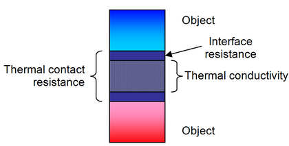 - For each interface between two objects in contact with each other, there will be a temperature drop across the interface. For such composite systems, the temperature drop across the interface may be appreciable.[11] This temperature change may be attributed to what is known as the thermal contact resistance.[11] Thermal interface materials (TIM) decrease the thermal contact resistance.