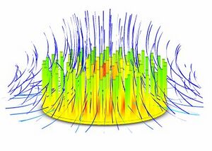 In industry, thermal analyses are often ignored in the design process or performed too late — when design changes are limited and become too costly.[10] Of the three methods mentioned in this article, theoretical and numerical methods can be used to determine an estimate of the heat sink or component temperatures of products before a physical model has been made. A theoretical model is normally used as a first order estimate. Online heat sink calculators[30] can provide a reasonable estimate of forced and natural convection heat sink performance based on a combination of theoretical and empirically derived correlations. Numerical methods or computational fluid dynamics (CFD) provide a qualitative (and sometimes even quantitative) prediction of fluid flows.[31][32] What this means is that it will give a visual or post-processed result of a simulation, like the images in figures 16 and 17, and the CFD animations in figure 18 and 19, but the quantitative or absolute accuracy of the result is sensitive to the inclusion and accuracy of the appropriate parameters.