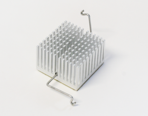 | Wire form Z-clips | Strong mechanical attachment. Easy removal/rework. Applies a preload to the thermal interface material, improving thermal performance. | Requires holes in the board or solder anchors. More expensive than tape or epoxy. Custom designs. | Low |
