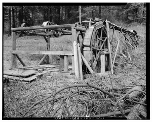 In the Roman Empire, water-powered mills were described by Vitruvius by the first century BC.[16] The Barbegal mill, located in modern-day France, had 16 water wheels processing up to 28 tons of grain per day.[17] Roman waterwheels were also used for sawing marble such as the Hierapolis sawmill of the late 3rd century AD.[18] Such sawmills had a waterwheel that drove two crank-and-connecting rods to power two saws. It also appears in two 6th century Eastern Roman sawmills excavated at Ephesus and Gerasa respectively. The crank and connecting rod mechanism of these Roman watermills converted the rotary motion of the waterwheel into the linear movement of the saw blades.[19]