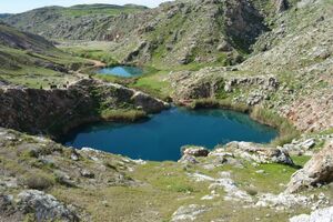 Apart from some few springs here and there, such as Siah-Ghav Twin Lakes near Abdanan, there are no major natural bodies of water in the province. There are, however, four dam that provide important drinking water, these include Ilam, Seymareh, Eywan and Doiraj dams.[30]