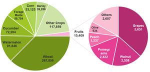 - ^ Ahmadi, Karim; Ebadzadeh, Hamidreza; Hatami, Farshad; Abdeshah, Helda; Kazemian, Arezoo (2019). آمارنامه كشاورزی سال زراعی ۹۶-۱۳۹۷ [Agricultural Statistics of the Harvest Year 1396-97] (PDF) (in الفارسية). Vol. 1: Crops. Tehran: Ministry of Agriculture. ISBN 978-964-467-090-9. Archived from the original (PDF) on 21 يناير 2022. Retrieved 22 يونيو 2020.