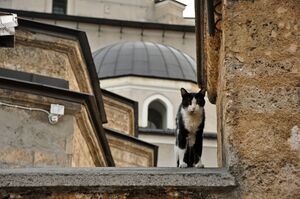 The cat is considered "the quintessential pet" by Muslims,[1] and is admired for their cleanliness, even going as far as being Muhammad's favourite animal.[2] Unlike other animals, such as dogs, Islamic Law considers them pure and allows cats to freely enter homes and even mosques. It is believed to be the most common pet in Muslim countries.[1]