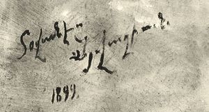 توقيع آيڤازوڤسكي بالأرمنية على لوحة زيتية من عام 1899.