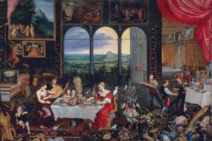 Jan Brueghel the Elder produced various sets of allegorical paintings, in particular on the themes of the Five senses and the Four Elements. These paintings were often collaborations with other painters such as is the case with the five paintings representing the Five senses on which Brueghel and Rubens collaborated and which are now in the Prado Museum in Madrid. He also collaborated with Hendrick van Balen on various allegorical compositions such as a series on the Four Elements as well as an Allegory of Public Welfare (Museum of Fine Arts, Budapest).