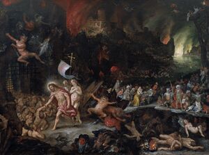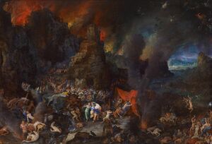 Jan Brueghel is believed to have produced his hell scenes for a newer, elite audience of learned and sophisticated collectors. To appeal to this erudite clientele he often populated the hell scenes with mythological rather than religious subjects, in particular the Vergilian scene of Aeneas in Hades, escorted by the Cumaean Sibyl. An example is Aeneas and the Sibyl in the Underworld (1619, Kunsthistorisches Museum, Vienna). Other mythological themes appearing in his hell scenes included the image of Juno visiting Hades and Orpheus in the Underworld from Ovid's Metamorphoses. An example of the latter is Orpheus in the Underworld (Palazzo Pitti). In these compositions brightly coloured monsters provide the 'recreational terror' of the later manifestations of Boschian design.[43]