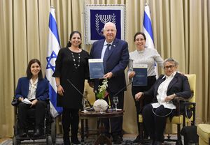كارن الحرار (أقصى اليسار) في اجتماع مع الرئيس الإسرائيلي رئوڤن رڤلين حول "القيادة والإعاقة" في يناير 2018.