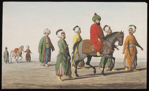 In the Ottoman Empire, the title of kaymakam (known either as sadâret kaymakamı or as kaymakam pasha) was originally used for the official deputizing for the Grand Vizier during the latter's illness, absence from the capital on campaign, or in the interval between the dismissal of one Grand Vizier and the arrival to the capital of a new appointee. The practice began in the 16th century, or perhaps even earlier, and continued until the end of the Empire.[2] The kaymakam enjoyed the full plenitude of powers of the Grand Vizier, but was not allowed to intervene in the conduct of the military campaigns. Selected from the ranks of the viziers, the kaymakam played an important role in the politics of the capital and often became involved in intrigues against the absent Grand Vizier, trying to replace him. In the last decades of the Empire, the post of kaymakam was filled by the members of the imperial cabinet, or by the Shaykh al-Islam.[2]