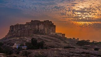 After restoring peace, Jodha constructed a new capital fort on a hilltop 6 miles south of Mandore named Mehrangarh. The city came to be known by his name. Thus the city of Jodhpur was settled.[37] Soon, he expanded his territory greatly. One of his sons, Bika captured Janglu which he named Bikaner after himself and became its Rao.[38]