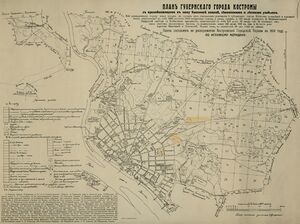 In 1773, Kostroma was devastated by a great fire. Afterwards the city was rebuilt with streets radiating from a single focal point near the river. They[من؟] say that Catherine the Great dropped her fan on the city map, and told the architects to follow her design. One of the best preserved examples of the 18th century town planning, Kostroma retains some elegant structures in a "provincial neoclassical" style. These include a governor's palace, a fire tower, a rotunda on the Volga embankment, and an arcaded central market with a merchant church in the center.[بحاجة لمصدر]