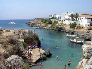 Only five of the island's villages are on the coast (Platia Amos, Agia Pelagia, Diakofti, Avlemonas, & Kapsali). During July and August, several traditional dances will be held in various villages. These dances usually attract the majority of the island's population, the biggest of which are the festival of 'Panagia' in Potamos on 15 August, and the wine festival in Mitata on the first Friday and Saturday of August.