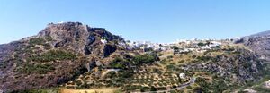 Kythira and the nearby island of Antikythira were separate municipalities until they were merged at the 2011 local government reform; the two islands are now municipal units of Kythira municipality.[3] The municipality has an area of 300.023 km2, the municipal unit 279.593 km2.[4] The province of Kythira (باليونانية: Επαρχία Κυθήρων) was one of the provinces of Lakonia, then of Argolis and Korinthia, then of Attica Prefecture from 1929 to 1964. Then from 1964 to 1972 Kythira became part of newly establishment Piraeus Prefecture and after dissolution of Piraeus prefecture returned to Attica Prefecture as part of Piraeus prefecture (Νομαρχία). It was abolished in 2006. From 2011 it is part of the Islands regional unit of Attica region.