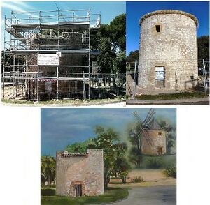 The tower mill of Bertoire (13410 – Lambesc) was built of local stone (between 1795 et 1810), with a vaulted ground floor to support the first floor and two rotating and recumbent wheels. It is located near the sports park, opposite the "Calypso" shopping centre. The "Conservation patrimoine de Lambesc" (CPL) Association was founded in October 2009, whose first project is to add sails to the mill and then to grind wheat; the tower will then become a windmill.