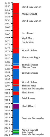 This is a graphical lifespan timeline of prime ministers of Israel. The prime ministers are listed in order of office, with prime ministers who held the office more than once listed in order of their first term.
