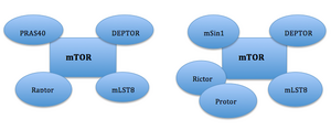 - ^ أ ب Sarbassov DD, Ali SM, Sengupta S, Sheen JH, Hsu PP, Bagley AF, Markhard AL, Sabatini DM (April 2006). "Prolonged rapamycin treatment inhibits mTORC2 assembly and Akt/PKB". Molecular Cell. 22 (2): 159–68. doi:10.1016/j.molcel.2006.03.029. PMID 16603397.