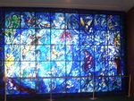 The only church in England with a complete set of Chagall window-glass is located in the tiny village of Tudeley, in Kent, إنگلترة. Chagall painted 12 colorful stained-glass windows in Hadassah Hospital Ein Kerem in Jerusalem, with each frame depicting a different tribe. In the United States, the Union Church of Pocantico Hills contains a set of Chagall windows commemorating the prophets, which was commissioned by John D. Rockefeller, Jr. [1].