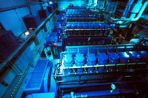 While currently not commonly used in the maritime industry, hydrogen as a fossil fuel alternative is an area with heavy investment. As of 2018 the shipping company Maersk has pledged to be carbon free by 2050, a goal they plan to achieve partly by investing in hydrogen fuel technology.[17] While hydrogen is a promising fuel, it has a few disadvantages. Hydrogen is far more flammable than other fuels such as diesel, so precautions must be taken. It is also not very energy dense, so it has to be heavily compressed to increase its energy density enough for it to be practical, similar to methane and LNG.[17] Hydrogen can have its power extracted either by use of a fuel cell system or it can be burned in an internal combustion engine, similar to the diesel engines presently used in the maritime industry.[18]