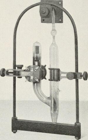The earliest type of mercury vapor electric rectifier consists of an evacuated glass bulb with a pool of liquid mercury sitting in the bottom as the cathode.[7] Over it curves the glass bulb, which condenses the mercury that is evaporated as the device operates. The glass envelope has one or more arms with graphite rods as anodes. Their number depends on the application, with one anode usually provided per phase. The shape of the anode arms ensures that any mercury that condenses on the glass walls drains back into the main pool quickly to avoid providing a conductive path between the cathode and respective anode.