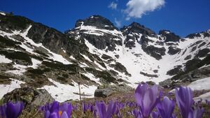 Above the tree line the ecosystem is called the alpine zone or alpine tundra, dominated by grasses and low-growing shrubs. The biotemperature of the alpine zone is between 1.5 و 3 °C (34.7 و 37.4 °F). Many different plant species live in the alpine environment, including perennial grasses, sedges, forbs, cushion plants, mosses, and lichens.[6] Alpine plants must adapt to the harsh conditions of the alpine environment, which include low temperatures, dryness, ultraviolet radiation, and a short growing season. Alpine plants display adaptations such as rosette structures, waxy surfaces, and hairy leaves. Because of the common characteristics of these zones, the World Wildlife Fund groups a set of related ecoregions into the "montane grassland and shrubland" biome. A region in the Hengduan Mountains adjoining Asia's Tibetan Plateau have been identified as the world's oldest continuous alpine ecosystem with a community of 3000 plant species, some of them continuously co-existing for 30 million years.[7]