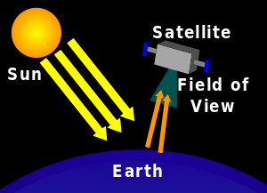 Nadir also refers to the downward-facing viewing geometry of an orbiting satellite,[1] such as is employed during remote sensing of the atmosphere, as well as when an astronaut faces the Earth while performing a spacewalk. A nadir image is a satellite image or aerial photo of the Earth taken vertically. A satellite ground track represents its orbit projected to nadir on to Earth's surface.