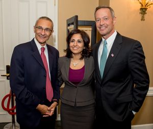 تاندن وجون پودستا (يسار) والحاكم مارتن أومالي (يمين).