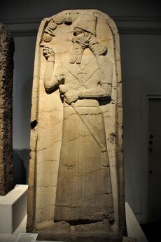Shamshi-Adad's son Adad-nirari III (ح. 811–783 BC) was probably very young at the time of his father's death in 811, and real political power during his early reign was probably wielded by the turtanu Nergal‐ila'i and by Adad-nirari's mother Shammuramat.[55] Shammuramat was one of the most powerful women in Assyrian history and perhaps for a time served as co-regent;[57] she is recorded to have partaken in a military campaign, the only ancient Assyriain woman known to have done so, against Kummuh in Syria and is credited in inscriptions alongside her son for expanding Assyrian territory, usually only a royal privilege.[58] After Shammuramat's death, Adad-nirari continued to be dominated by other figures, such as the eunuch Nergal-eresh.[55] Despite his limited sole authority, Adad-nirari's reign saw some military successes and Assyrian armies campaigned in western Iran at least thirteen times. The western territories, now more or less autonomous, were only attacked four times, though Adad-nirari managed to defeat Aram-Damascus. In 790 BC, Adad-nirari conducted the first Assyrian campaign against the Aramaic tribes now living in the Assyro-Babylonian border regions. In ح. 787 BC, Adad-nirari appointed the new turtanu Shamshi-ilu. Shamshi-ilu would occupy this position for about 40 years and was for most of that time likely the most powerful political actor in Assyria.[59]