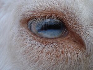 The Nigerian Dwarf is small but well-proportioned; its conformation resembles that of larger dairy goats.[4]:399 It may be horned or naturally hornless.[2] The coat is fine and fairly short, and may be of any color, or multicolored;[2] common colors are gold, chocolate and black, frequently with white markings. The facial profile may be concave or straight; the ears are upright.[4]:399 The average weight is approximately 35 kg (75 lb), while maximum height is about 60 cm (24 in) for males and slightly less for females;[4]:399 stock bred for dairy performance may be rather larger than show or companion animals.[2]