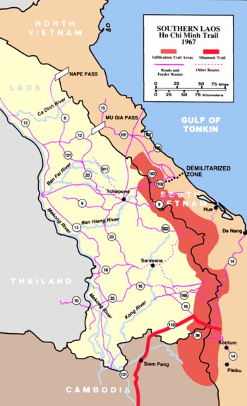 The Vietnamese party's strategy was by now decided with regard to South Vietnam.[1] At the same time, the party outlined a role for the LPP that was supportive of North Vietnam, in addition to the LPP's role as leader of the revolution in Laos.[1] Hanoi's southern strategy opened the first tracks through the extremely rugged terrain of Xépôn district in mid-1959 of what was to become the Ho Chi Minh Trail.[1]