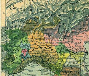 During the Late Middle Ages, after the fall of the northern part of the Lombard Kingdom to Charlemagne, the term Longobardia was used to mean Northern Italy within the medieval Kingdom of Italy. As the area became partitioned in regional states the term Lombardy subsequentially shifted to indicate only the area of the Duchies of Milan, Mantua, Parma and Modena and later only to the area around Milan.