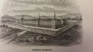 After the Revolutionary War ended, Rufus Putnam (the "Father of Ohio") and Manasseh Cutler were instrumental in creating the Northwest Ordinance,[23] which opened up the Northwest Territory for settlement. This land was used to serve as compensation for what was owed to Revolutionary War veterans. It was at Putnam's recommendation that the land was surveyed and laid out in townships of six miles square. He organized and led the first group of veterans to the territory. They settled at Marietta, Ohio, where they built a large fort called Campus Martius.[24][25][26]