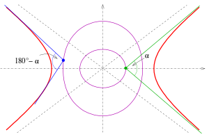 The solution for the case of a hyperbola can be adopted from the ellipse case by replacing b 2 with −b 2 (as in the case of the orthoptics, see above ).