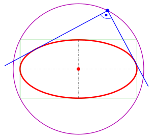 Isoptics (purple) of an ellipse for angles 80° and 100°