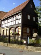 The Slavic population (Sorbs), who lived east of the Elbe, primarily built log houses, which had proven suitable for the regional climates and wood was plentiful in the continental regions. The German settlers, mainly from Franconia and Thuringia, who advanced into the area in the 13th century, brought with them the half-timbering style, which was already known to the Germanic peoples, as a wood-saving, solid and stable construction method, that allowed multi-storey buildings. A combination of the two construction methods was difficult because the horizontally stacked wood of the log room expands differently in height than the vertical posts of the framework. The result was the new type of half-timbered house with a timber frame around the ground floor block, capable to support a second floor, which was made of half-timber.