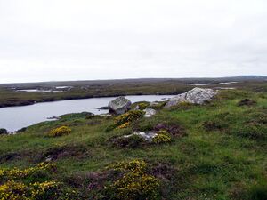 In cool climates with consistently high rainfall (on more than c. 235 days a year), the ground surface may remain waterlogged for much of the time, providing conditions for the development of bog vegetation. In these circumstances, bog develops as a layer "blanketing" much of the land, including hilltops and slopes.[24] Although a blanket bog is more common on acidic substrates, under some conditions it may also develop on neutral or even alkaline ones, if abundant acidic rainwater predominates over the groundwater. A blanket bog can occur in drier or warmer climates, because under those conditions hilltops and sloping ground dry out too often for peat to form – in intermediate climates a blanket bog may be limited to areas which are shaded from direct sunshine. In periglacial climates a patterned form of blanket bog may occur, known as a string bog. In Europe, these mostly very thin peat layers without significant surface structures are distributed over the hills and valleys of Ireland, Scotland, England, and Norway. In North America, blanket bogs occur predominantly in Canada east of Hudson Bay. These bogs are often still under the influence of mineral soil water (groundwater). Blanket bogs do not occur north of the 65th latitude in the northern hemisphere.[7]