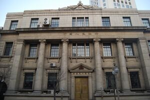 The bank was established on December 1, 1948, based on the consolidation of the Huabei Bank, the Beihai Bank and Northwestern Farmers' Bank.[5] The headquarters was first located in Shijiazhuang, Hebei, and then moved to Beijing in 1949. Between 1950 and 1978 the PBC was the only bank in the People's Republic of China and was responsible for both central banking and commercial banking operations.[6] All other banks within mainland China such as the Bank of China were either organized as divisions of the PBC[7] or were non-deposit taking agencies.[8][9]