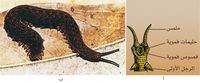 يؤدي الفم إلى بلعوم عضلي وأنبوب هضم مستقيم (الشكل2)، ينتهي بفوهة شرج على الوجه السفلي لنهاية الحيوان.