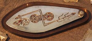 The Picts are often said to have tattooed themselves, but evidence for this is limited. Naturalistic depictions of Pictish nobles, hunters and warriors, male and female, without obvious tattoos, are found on monumental stones. These include inscriptions in Latin and ogham script, not all of which have been deciphered. The well-known Pictish symbols found on standing stones and other artefacts have defied attempts at translation over the centuries. Pictish art can be classed as "Celtic" and later as Insular.[67] Irish poets portrayed their Pictish counterparts as very much like themselves.[68]