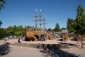 One of the first playgrounds in the United States was built in San Francisco's Golden Gate Park in 1887.[10] In 1906 the Playground Association of America was founded and a year later Luther Gulick became president.[11] It later became the National Recreation Association and then the National Recreation and Park Association.[12] Urging the need for playgrounds, former President Theodore Roosevelt stated in 1907: