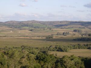Coxilhas (تلال تغطيها الأرض العشبية) في الپامپا، ولاية ريو گراندي دو سول، البرازيل