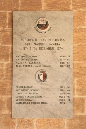رئيس مالطا (مالطية: President ta' Malta) هو الرئيس الدستوري لدولة مالطا. يتم تعيين الرئيس بقرار من مجلس النواب في مالطا لمدة خمس سنوات ، مع حلف اليمين على "الحفاظ على الدستور وحمايته والدفاع عنه".[2] يقيم رئيس مالطا أيضًا بشكل مباشر أو غير مباشر في جميع الفروع الثلاثة للدولة. هم جزء من البرلمان ومسؤولون عن تعيين السلطة القضائية. السلطة التنفيذية مناطة اسمياً بالرئيس ، ولكن يمارسها فعلياً رئيس الوزراء.[3]
